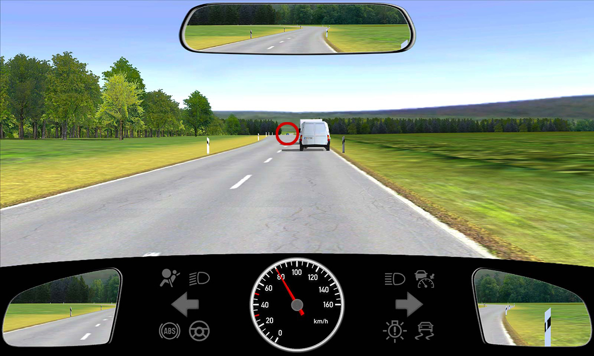 • Einschätzen der Geschwindigkeit und Distanz des vorausfahrenden Fahrzeugs sowie des Gegenverkehrs.